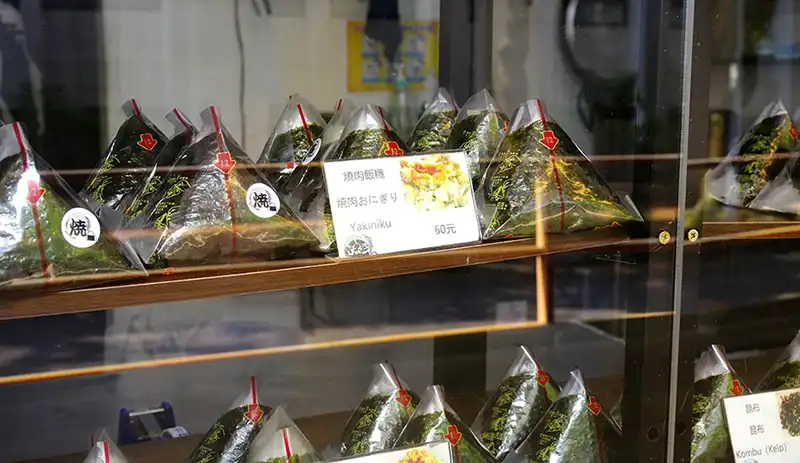 店內提供十幾種不同口味的飯糰,每一款都有其獨特風味,也各自擁有固定的擁護者,在眾多口味中,最受歡迎的前三名分別是鮭魚、炸雞與炸蝦飯糰。其中最能代表日本的梅子飯糰,將酸味十足的梅子搭配味醂調和,飯糰內再放入柴魚片,吃起來酸酸甜甜並帶有柴魚的香氣。據浜本さん分享,有些顧客很喜歡店裡的梅子飯糰,因此每天都會前來購買。