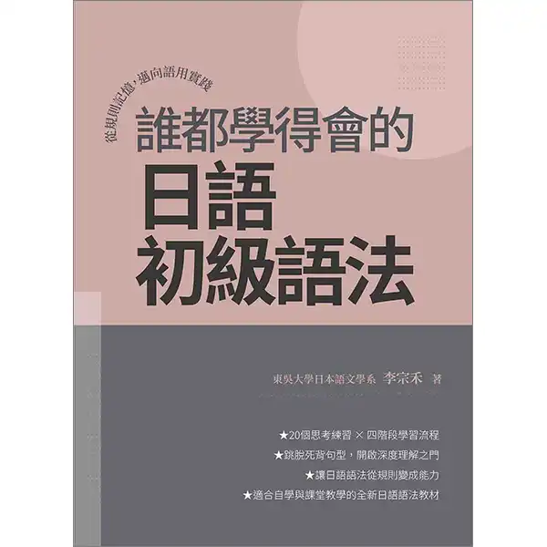 本書拋開傳統的「直接講授」模式,不再只是教師單向灌輸知識,而是設計出能引導您主動參與思考的學習流程。因此,在本書中,「思辨力」扮演著極為重要的角色。李宗禾老師認為,日語初級語法學習不僅僅是規則記憶與套用句型,因此精心構思思考題目,引導您主動比較、聯想與推理。例如,對比母語與日語的差異,您會發現語法規則背後的邏輯,進而理解語言使用的情境與目的。經由這樣的過程,能讓您學習語法不再只是死記硬背而已,可以轉化為一種深度理解與靈活運用的能力。只要養成您的「思辨力」,就能讓您具備開口說日語的基礎能力!