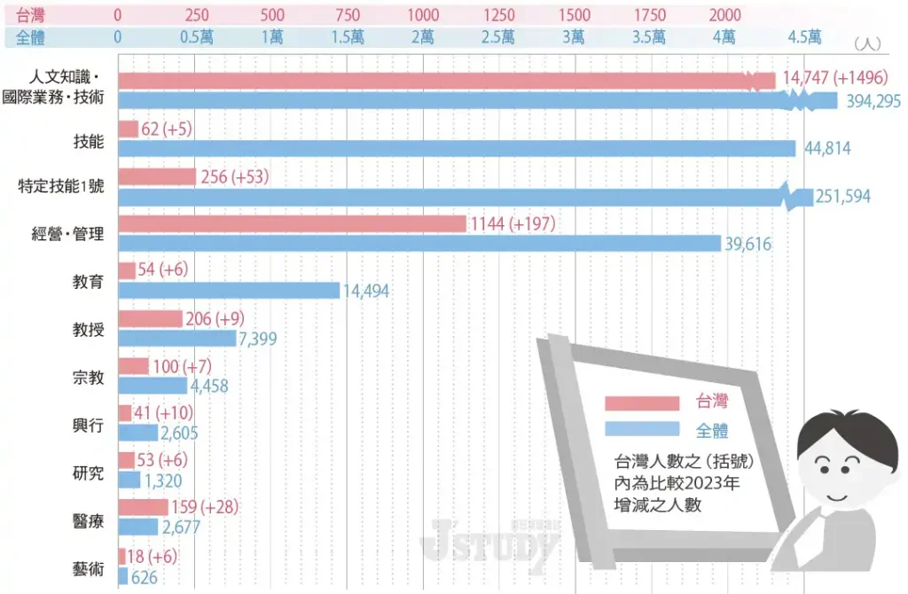 2024年以就業相關「在留資格」旅居日本外國人人數
