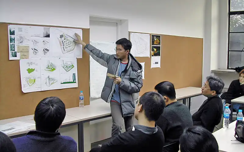 王銘顯坦言自己是比較特殊的案例,其實東海大學建築學系的學生,有八成以上都是選擇赴歐洲或美國留學,主要還是語言的問題,也因此他認為學習日文,是赴日前準備項目的第一順位。當時除了建築系的課程,他選擇同時輔修日文,花費許多時間投入語言的學習。然而輔系的課程通常是在晚上六點到九點,有時前一天因為做設計而熬夜,還是得打起精神繼續學習。對此王銘顯笑說:「因為本來就有興趣,所以上日文課對我來說蠻輕鬆,日文課的成績還幫我把整體分數拉高了。」除了語言,王銘顯對於日本台灣交流協會獎學金早有耳聞,也多少了解初試的考試科目,由於及早準備,他在退伍的那年便順利通過第一階段的考試,緊接著提交研究計畫書。等到確認取得獎學金資格之後,最關鍵的一步就是要找到指導教授,才能夠在隔年四月入學。王銘顯分享:「我當時花了不少時間瀏覽各個大學的網站,也親自前往幾間學校去拜訪教授。」他主要鎖定在建築業界具有知名度,同時任教於大學的建築師,特別是以東京大學、東京科學大學為目標,前後共面試了三位教授。最後是東京科學大學的仙田滿教授願意指導,王銘顯便在隔年四月以研究生的身分入學,通過考試後於九月正式進入研究室。